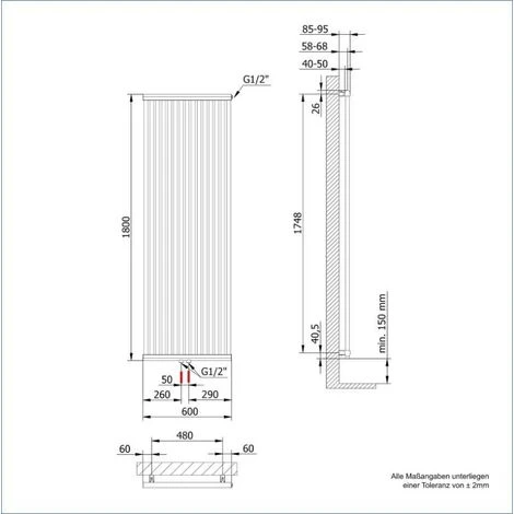 – Höhe x Breite: 1.800 x 600 mm