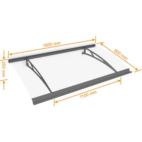 Das Vordach besteht aus einer 3mm starken Polycarbonat Abdeckung und Wandhalterungen aus anthrazit pulverbeschichtetem Stahl. Das spricht für eine lange Lebensdauer. Die Polycarbonat Abdeckung ist – ebenso wie die Stahlwandhalterung – beständig gegen Witterung und UV-Strahlung. Das Vordach ist stabil und trotzdem leicht.